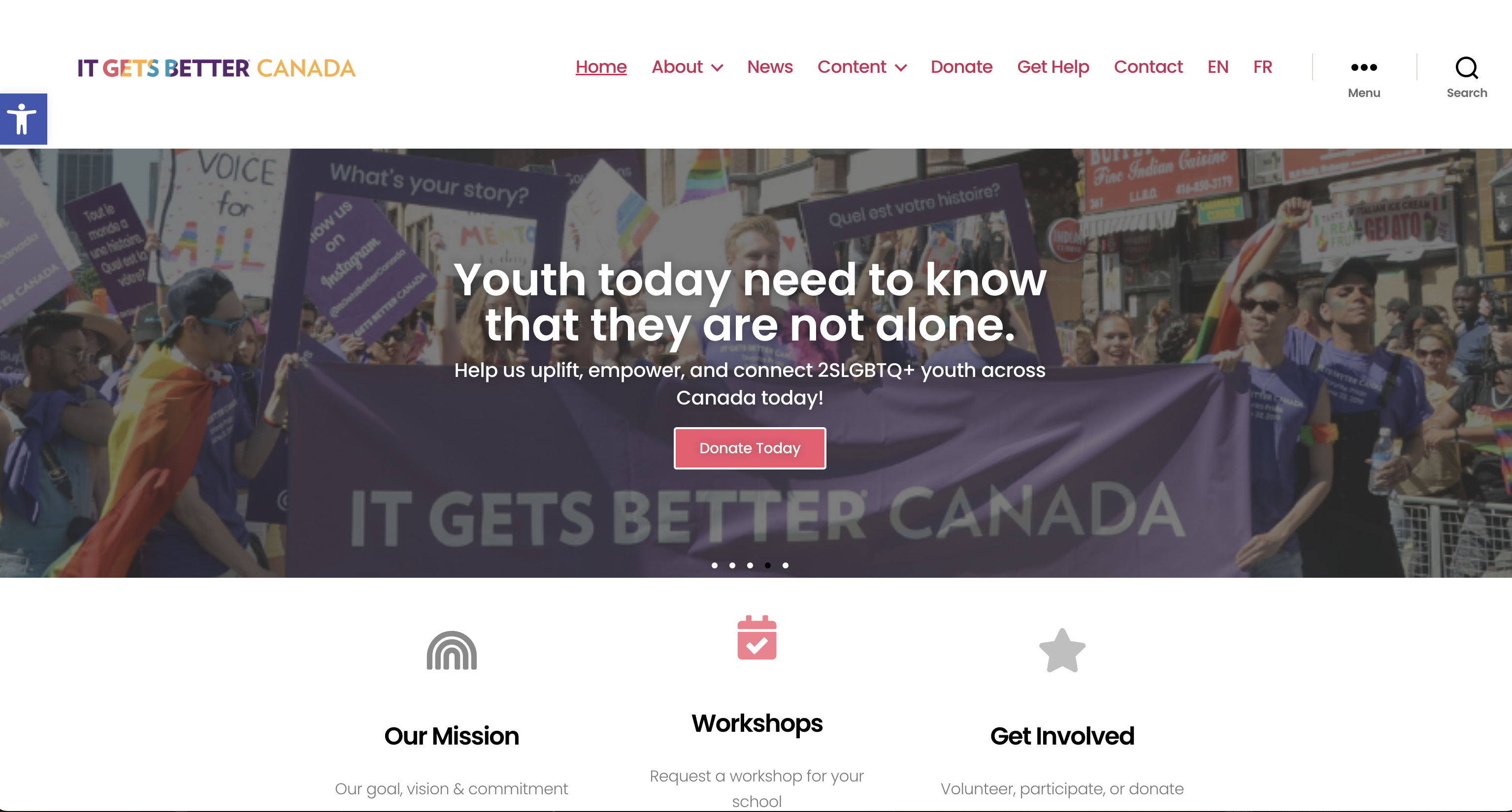 It Gets Better is the world’s largest storytelling effort to empower LGBTQ+. Investing in local, like-minded organizations outside the US, It Gets Better brings story-telling and other life-affirming support to communities of LGBTQ+ around the globe.